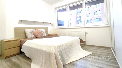 Nabízíme k podnájmu moderní byt 2+kk o velikosti 63 m2 na ulici Edvarda Beneše v Olomouci, městská část Řepčín. Byt se nachází v 1. nadzemním podlaží novější rezidenční zástavby. Interiér bytu tvoří oddělená ložnice vybavená dvoulůžkovou postelí, dvěma nočními stolky a prostornými šatními skříněmi. Obývací část je propojená s kuchyňským koutem vybaveným vestavěnými spotřebiči. K dispozici je moderní koupelna a předsíň s botníkem, komodou a šatní stěnou. Na oknech jsou vnitřní i zatemňovací rolety, instalována je také síť proti hmyzu. K bytu náleží komora umístěná na stejném patře. Lokalita nabízí klidné a pohodlné bydlení s kompletní občanskou vybaveností. V docházkové vzdálenosti se nachází mateřská a základní škola, obchody i restaurace. Díky MHD je zajištěno rychlé spojení do centra města, zároveň je v blízkosti dobré napojení na hlavní silniční tahy. V případě zájmu o prohlídku mě neváhejte kontaktovat, ráda vás bytem provedu a zodpovím všechny vaše dotazy.