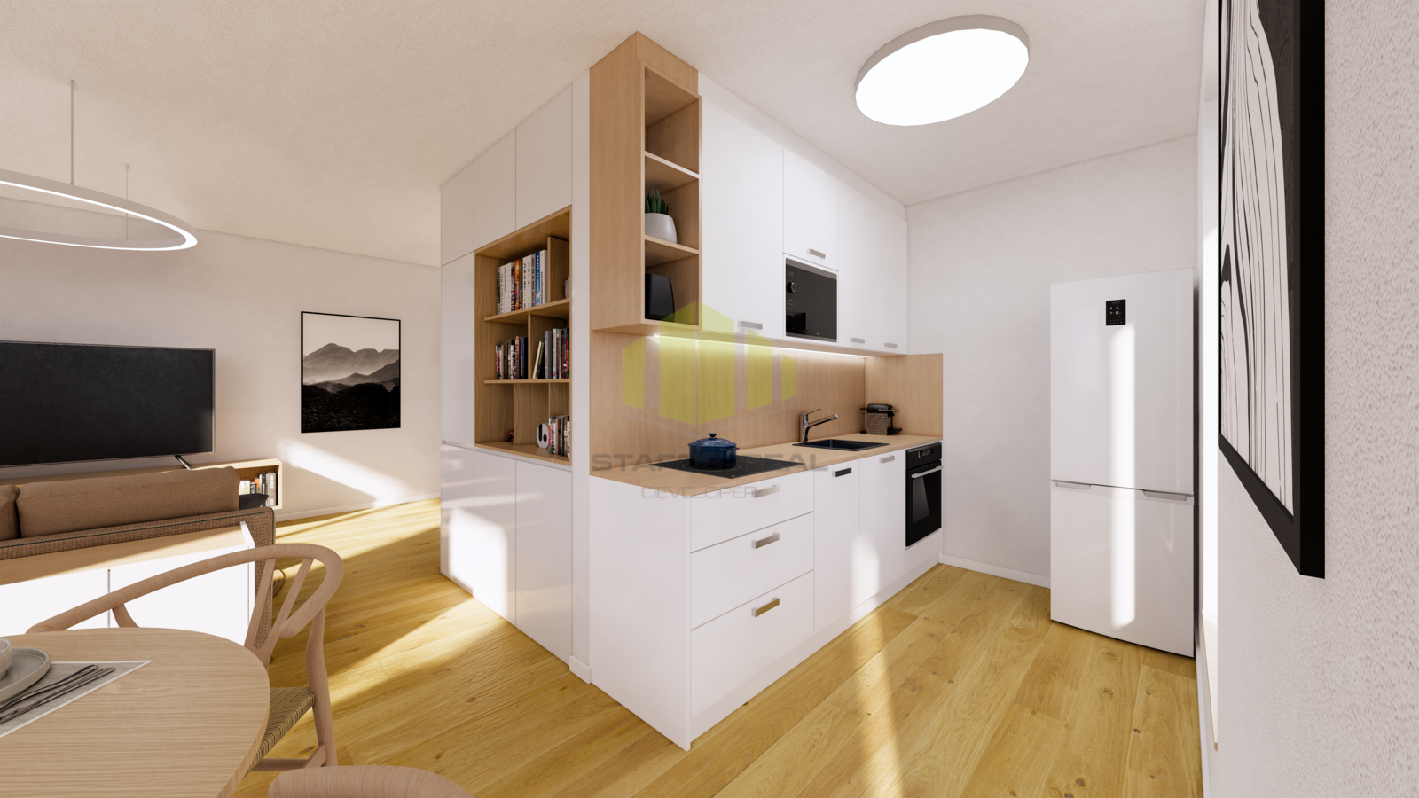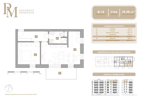 Světlý a moderně řešený byt 2+kk s balkonem v projektu Rezidence Mánesova v Lipníku nad Bečvou představuje ideální volbu pro páry, mladé rodiny nebo investory. Byt je vybaven vinylovými podlahami, teplovodním podlahovým vytápěním, kuchyňskou linkou v ceně bytu, přípravou pro venkovní žaluzie a u bytů ve 4.-6. NP také přípravou na klimatizaci. Interiérové prvky je možné zvolit ve světlé (2NP, 4NP, 6NP) nebo tmavé variantě (3NP, 5NP). Součástí prodeje je nutnost zakoupení venkovního parkovacího stání, k bytu lze dále dokoupit sklepní kóji. Rezidence se nachází v klidné části města s kompletní občanskou vybaveností - obchody, školy, restaurace i zastávka veřejné dopravy jsou v docházkové vzdálenosti. Byty 2+kk kombinují kvalitní zpracování, příznivou cenu a moderní styl bydlení. Dokončení výstavby 12/2026.