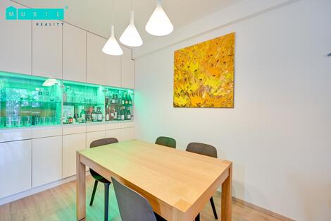 Nabízíme k pronájmu nadstandardní byt o dispozici 4+kk na ulici Rokycanova v Olomouci. Byt se nachází ve 2. patře moderního bytového domu v těsné blízkosti centra města, parku a obchodního centra. Užitná plocha bytu činí přibližně 112 m, k bytu náleží dvě prostorné terasy o celkové výměře 28 m, které poskytují výjimečný komfort bydlení. Dispozičně velmi zajímavým prvkem je soukromá sauna, která rozděluje jednu z teras na dvě samostatné části, díky čemuž má každý z pokojů vlastní venkovní prostor. Terasa je navíc vybavena zatahovací zástěnou pro maximální soukromí. Byt je orientován na severní a jižní stranu, je vybaven klimatizací a vnitřními žaluziemi ve dvou pokojích a vnitřními panelovými závěsy v dalších dvou pokojích. Byt je částečně vybavený. V předsíni se nachází vestavěné skříně, v obývacím pokoji je vestavěná úložná stěna a designová LED stěna za televizí. Kuchyňská linka je plně vybavena spotřebiči elektrickou troubou, varnou deskou, digestoří, myčkou nádobí a mikrovlnnou troubou. Po dohodě je možné přenechat i stávající lednici za poplatek přímo současnému nájemníkovi. Byt disponuje dvěma koupelnami hlavní koupelna je vybavena vanou a WC, dále je k dispozici samostatné WC a druhá koupelna se sprchovým koutem, která je součástí hlavní ložnice, čímž vzniká komfortní rodičovský apartmán. Ke každému pokoji náleží vlastní terasa. Součástí bytu je také prostorná komora umístěná na stejném patře. K bytu náleží kryté podzemní parkovací stání přímo pod domem, které je velkou výhodou v této lokalitě. Lokalita nabízí výjimečnou dostupnost centrum města, park, obchody, služby i MHD jsou v bezprostřední blízkosti. Byt tak kombinuje klidné a komfortní bydlení s městským životním stylem. Nájemné činí 26.900 Kč měsíčně včetně parkovacího stání, zálohy na služby jsou ve výši 5.400 Kč měsíčně. Elektřina bude přepsána na nového nájemníka. Kauce je stanovena ve výši dvou měsíčních nájmů. Provize realitní kanceláře odpovídá jednomu měsíčnímu nájmu plus DPH. Byt je k nastěhování od 1. 4. 2026 a je ideální pro větší rodinu, která hledá nadstandardní, exkluzivní bydlení s relativně nízkými provozními náklady. Pro více informací nebo sjednání prohlídky kontaktujte makléře zakázky. <a href="https://www.eurobydleni.cz/byty/1_kk/praha-10/obec-dolni-mecholupy/prodej/"><strong>Prodej bytu 1+kk Praha 10, Dolní Měcholupy</strong></a>