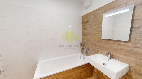 Nabízíme k pronájmu moderní byt 2+kk v kvalitní novostavbě, která byla právě zkolaudována a nachází se v klidné lokalitě na ulici Topolová v oblíbené městské části Slavonín. Dům je situován v bezprostřední blízkosti rybníka Hamrys a nedaleko zastávek MHD, což zajišťuje ideální kombinaci klidného bydlení v zeleni a rychlé dostupnosti centra Olomouce. Byt se nachází ve 3. nadzemním podlaží, má podlahovou plochu 55,5 m2 a disponuje prostornou lodžií o výměře 11,4 m2, přístupnou z obývacího pokoje. Celková plocha bytu činí 66,9 m2. Byt je orientován na východ a jeho dispozice zahrnuje obývací pokoj s kuchyňským koutem, ložnici, vstupní halu, velkorysou šatnu, koupelnu a samostatné WC. Kuchyňský kout je vybaven kuchyňskou linkou s indukční varnou deskou, elektrickou troubou, vestavnou myčkou nádobí a samostatně stojící lednicí s mrazákem. V koupelně se nachází vana, umyvadlo, otopný žebřík a příprava pro pračku. Byt se pronajímá nevybavený, s výjimkou kuchyňské linky a spotřebičů. Standard bytu odpovídá současným nárokům na moderní bydlení - vinylové podlahy, okna s izolačním trojsklem, keramické obklady a dlažba v koupelně, stínicí prvky v podobě žaluzií či kolejnic pro závěsy, u vybraných bytů klimatizace. Dům je zařazen do energetické třídy B, nabízí bezbariérový přístup, moderní výtah, vysokorychlostní internet a zvýšený akustický komfort díky cihlovým příčkám AKUSYM. K bytu je možné si pronajmout vnitřní parkovací stání se sklepem v suterénu domu, případně také venkovní nezastřešené parkovací stání za závorou. Lokalita nabízí dětské hřiště, příjemné procházky kolem rybníka, dvě vyhlášené restaurace a kompletní občanskou vybavenost. Aquapark, nádraží i centrum města jsou dostupné během několika minut. Byt je nekuřácký, možnost chovu domácích mazlíčků je na vyžádání. Měsíční nájemné činí 18.000 Kč, zálohy na služby přibližně 2.700 Kč měsíčně, přičemž elektřina a internet nejsou v zálohách zahrnuty a hradí si je nájemce samostatně. Majitel požaduje zajištění závazků z nájemní smlouvy formou standardní vratné kauce ve výši dvojnásobku měsíčního nájemného vč. záloh, nebo prostřednictvím pojištění kauce společnosti CEE Specialty, které plně nahrazuje složení peněžní kauce. Pojistné činí 7 % ročně z pojistného limitu ve výši trojnásobku měsíčního nájemného bez záloh, minimální pojistný limit je 50.000 Kč s ročním pojistným 3.500 Kč. Odměna realitní kanceláře činí jeden měsíční nájem + 21 % DPH. U zájemců prověřujeme evidenci exekucí, insolvencí a dluhů na zdravotním pojištění. Byt je k dispozici od února až března 2026. Pro lepší představu doporučujeme shlédnout fotodokumentaci a virtuální prohlídku vzorového bytu.
