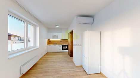 Nabízíme k pronájmu moderní byt 2+kk v kvalitní novostavbě, která byla právě zkolaudována a nachází se v klidné lokalitě na ulici Topolová v oblíbené městské části Slavonín. Dům je situován v bezprostřední blízkosti rybníka Hamrys a nedaleko zastávek MHD, což zajišťuje ideální kombinaci klidného bydlení v zeleni a rychlé dostupnosti centra Olomouce. Byt se nachází v 3. nadzemním podlaží, má podlahovou plochu 52,77 m2 a disponuje prostornou lodžií o výměře 14,27 m2, přístupnou z obývacího pokoje. Celková plocha bytu činí 67,04 m2. Byt je orientován na jihozápad a jeho dispozice zahrnuje obývací pokoj s kuchyňským koutem, ložnici, vstupní halu, velkorysou šatnu, koupelnu a samostatné WC. Kuchyňský kout je vybaven kuchyňskou linkou s indukční varnou deskou, elektrickou troubou, přípravou na myčku nádobí a samostatně stojící lednicí s mrazákem. V koupelně se nachází vana, umyvadlo, otopný žebřík a příprava pro pračku. Byt se pronajímá nevybavený, s výjimkou kuchyňské linky a spotřebičů. Standard bytu odpovídá současným nárokům na moderní bydlení - vinylové podlahy, okna s izolačním trojsklem, keramické obklady a dlažba v koupelně, stínicí prvky v podobě žaluzií či kolejnic pro závěsy, u vybraných bytů klimatizace. Dům je zařazen do energetické třídy B, nabízí bezbariérový přístup, moderní výtah, vysokorychlostní internet a zvýšený akustický komfort díky cihlovým příčkám AKUSYM. K bytu je možné si pronajmout vnitřní parkovací stání se sklepem v suterénu domu, případně také venkovní nezastřešené parkovací stání za závorou. Lokalita nabízí dětské hřiště, příjemné procházky kolem rybníka, dvě vyhlášené restaurace a kompletní občanskou vybavenost. Aquapark, nádraží i centrum města jsou dostupné během několika minut. Byt je nekuřácký, možnost chovu domácích mazlíčků je na vyžádání. Měsíční nájemné činí 18.000 Kč, zálohy na služby přibližně 2.700 Kč měsíčně, přičemž elektřina a internet nejsou v zálohách zahrnuty a hradí si je nájemce samostatně. Majitel umožňuje volbu zajištění závazků z nájemní smlouvy formou standardní vratné kauce ve výši trojnásobku měsíčního nájemného bez záloh, nebo prostřednictvím pojištění kauce společnosti CEE Specialty, které plně nahrazuje složení peněžní kauce. Pojistné činí 7 % ročně z pojistného limitu ve výši trojnásobku měsíčního nájemného bez záloh, minimální pojistný limit je 50.000 Kč s ročním pojistným 3.500 Kč. Přičemž majitel bytu preferuje formu pojištění kauce. Odměna realitní kanceláře činí jeden měsíční nájem + 21 % DPH. U zájemců prověřujeme evidenci exekucí, insolvencí a dluhů na zdravotním pojištění. Byt je k dispozici od února až března 2026. Pro lepší představu doporučujeme shlédnout fotodokumentaci a virtuální prohlídku vzorového bytu.