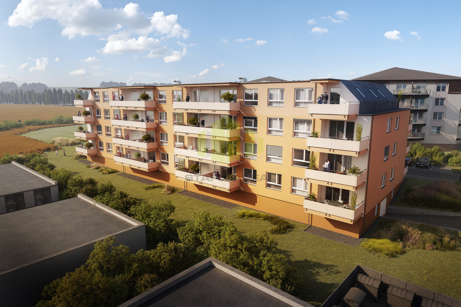 Nabízíme k pronájmu moderní byt 1+kk v kvalitní novostavbě, která byla právě zkolaudována a nachází se v klidné lokalitě na ulici Topolová v oblíbené městské části Slavonín. Dům je situován v bezprostřední blízkosti rybníka Hamrys a nedaleko zastávek MHD, což zajišťuje ideální kombinaci klidného bydlení v zeleni a rychlé dostupnosti centra Olomouce. Byt se nachází v 4. nadzemním podlaží, má podlahovou plochu 30,3 m2 a disponuje prostornou lodžií o výměře 5,94 m2, přístupnou z obývacího pokoje. Celková plocha bytu činí 36,24 m2. Byt je orientován na východ a jeho dispozice zahrnuje obývací pokoj s kuchyňským koutem, ložnici, vstupní halu, velkorysou šatnu, koupelnu a samostatné WC. Kuchyňský kout je vybaven kuchyňskou linkou s indukční varnou deskou, elektrickou troubou, přípravou na myčku nádobí a samostatně stojící lednicí s mrazákem. V koupelně se nachází vana, umyvadlo, otopný žebřík a příprava pro pračku. Byt se pronajímá nevybavený, s výjimkou kuchyňské linky a spotřebičů. Standard bytu odpovídá současným nárokům na moderní bydlení - vinylové podlahy, okna s izolačním trojsklem, keramické obklady a dlažba v koupelně, stínicí prvky v podobě žaluzií či kolejnic pro závěsy, u vybraných bytů klimatizace. Dům je zařazen do energetické třídy B, nabízí bezbariérový přístup, moderní výtah, vysokorychlostní internet a zvýšený akustický komfort díky cihlovým příčkám AKUSYM. K bytu je možné si pronajmout vnitřní parkovací stání se sklepem v suterénu domu, případně také venkovní nezastřešené parkovací stání za závorou. Lokalita nabízí dětské hřiště, příjemné procházky kolem rybníka, dvě vyhlášené restaurace a kompletní občanskou vybavenost. Aquapark, nádraží i centrum města jsou dostupné během několika minut. Byt je nekuřácký, možnost chovu domácích mazlíčků je na vyžádání. Měsíční nájemné činí 11.200 Kč, zálohy na služby přibližně 2.700 Kč měsíčně, přičemž elektřina a internet nejsou v zálohách zahrnuty a hradí si je nájemce samostatně. Majitel umožňuje volbu zajištění závazků z nájemní smlouvy formou standardní vratné kauce ve výši trojnásobku měsíčního nájemného bez záloh, nebo prostřednictvím pojištění kauce společnosti CEE Specialty, které plně nahrazuje složení peněžní kauce. Pojistné činí 7 % ročně z pojistného limitu ve výši trojnásobku měsíčního nájemného bez záloh, minimální pojistný limit je 50.000 Kč s ročním pojistným 3.500 Kč. Přičemž majitel bytu preferuje formu pojištění kauce. Odměna realitní kanceláře činí jeden měsíční nájem + 21 % DPH. U zájemců prověřujeme evidenci exekucí, insolvencí a dluhů na zdravotním pojištění. Byt je k dispozici od února až března 2026. Pro lepší představu doporučujeme shlédnout fotodokumentaci a virtuální prohlídku vzorového bytu.