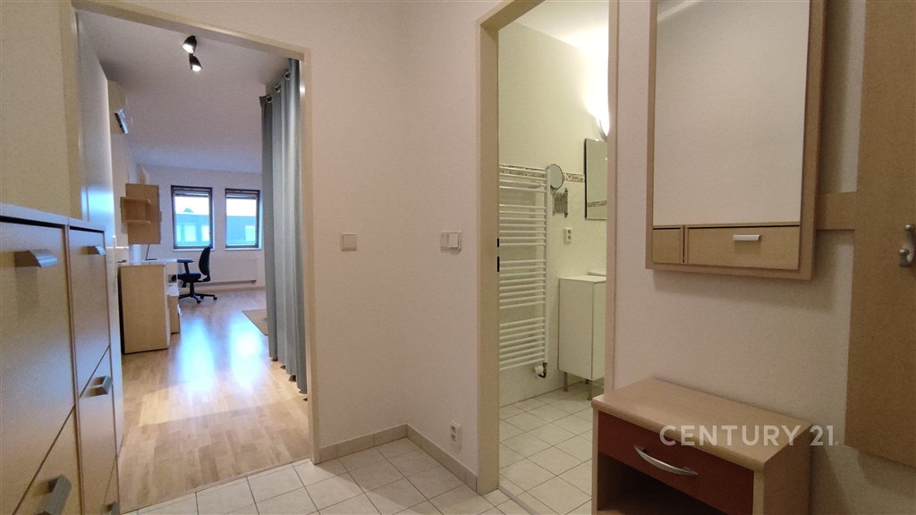 Exkluzivní podnájem nadstandardně vybaveného bytu 1+kk na ulici Handkeho v Olomouci. Byt má celkovou výměru 48 m2 a nachází se ve 6. NP bytového domu s výtahem. Tento prosluněný byt disponuje prostornou kuchyní se spotřebiči (elektrická trouba, mikrovlnná trouba, sklokeramická varná deska s digestoří a lednicí s mrazákem). Dále je k dispozici jídelní stůl a židle, komoda, dvoulůžková postel s nočním stolkem a lampou. Na druhé straně místnosti se nachází pracovní stůl s kolečkovým křeslem. Nechybí také odpočinková část, zde je k dispozici pohodlná sedačka, konferenční stolek a TV stěna. V zádveří věšáková stěna s botníky. Měsíční náklady na bydlení jsou 4 100 Kč. Byt bude k dispozici od 1.6.2026 Pokud máte zájem o prohlídku, neváhejte nás kontaktovat přes email nebo na uvedeném telefonním čísle.