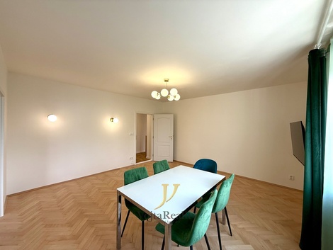 Představujeme vám k pronájmu slunný byt o dispozici 3+1 s balkonem, který se nachází v klidné a žádané lokalitě v ulici Ladova v Olomouci. Tato bytová jednotka je situována ve třetím patře cihlového domu, který prošel revitalizací střechy a sklepních prostor. Byt o celkové výměře 86 m2 vyniká svou prostorností a praktickým uspořádáním. Dispozice zahrnuje vstupní chodbu s dostatkem úložného prostoru, samostatnou toaletu a koupelnu vybavenou sprchovým koutem. Srdcem bytu je obývací pokoj, ze kterého se vstupuje do ložnice s přímým vstupem na balkon o velikosti 7 m2. K dispozici je dále další samostatný pokoj a kuchyně se spižírnou. Kuchyňská linka je plně vybavena vestavěnými spotřebiči, konkrétně plynovým sporákem, myčkou nádobí a elektrickou troubou. Součástí nabídky je také kompletní a vkusné vybavení, které v bytě zůstává a budoucím obyvatelům usnadní stěhování. Vstupní prostory jsou osazeny praktickými skříněmi a botníkem. Ložnice je plně zařízena šatní skříní, postelí, komodou a jsou zde izolační trojskla. K dispozici jsou také dvě zrcadla, nástěnné hodiny, dětský psací stůl, dětská postel, a další úložná skříň. Společné prostory doplňuje jídelní stůl se čtyřmi židlemi, televize a lednice. Útulnou atmosféru v každém pokoji dotvářejí instalované záclony a závěsy. V celém bytě jsou venkovní rolety. Kvalita interiéru je podtržena použitými materiály. V obytných místnostech jsou klasické parkety a vkusný vinil, v kuchyni je položena plovoucí podlaha a v koupelně keramická dlažba. Okna v celém bytě jsou plastová s dvojskly. Díky nedávné rekonstrukci střechy domu bylo v bytě realizováno také zateplení stropů, což zajišťuje příznivé tepelné vlastnosti prostoru. K bytu náleží sklep o výměře 7 m2. Nemovitost se nachází v lokalitě s kompletní občanskou vybaveností a výbornou dostupností do centra města. V blízkosti naleznete obchody, služby i zastávky veřejné dopravy. Tento byt je ideální volbou pro zájemce, kteří hledají prostorné bydlení v kvalitním zděném domě. Zálohy spojené s užíváním bytu činí cca 3 700,-Kč měsíčně (dle počtu osob). Přepis elektřiny a plynu na nájemce. Vratná kauce ve výši 20 000,-Kč. Provize RK činí jeden nájem + DPH. V případě zájmu o bližší informace nebo sjednání termínu prohlídky kontaktujte prosím našeho makléře.