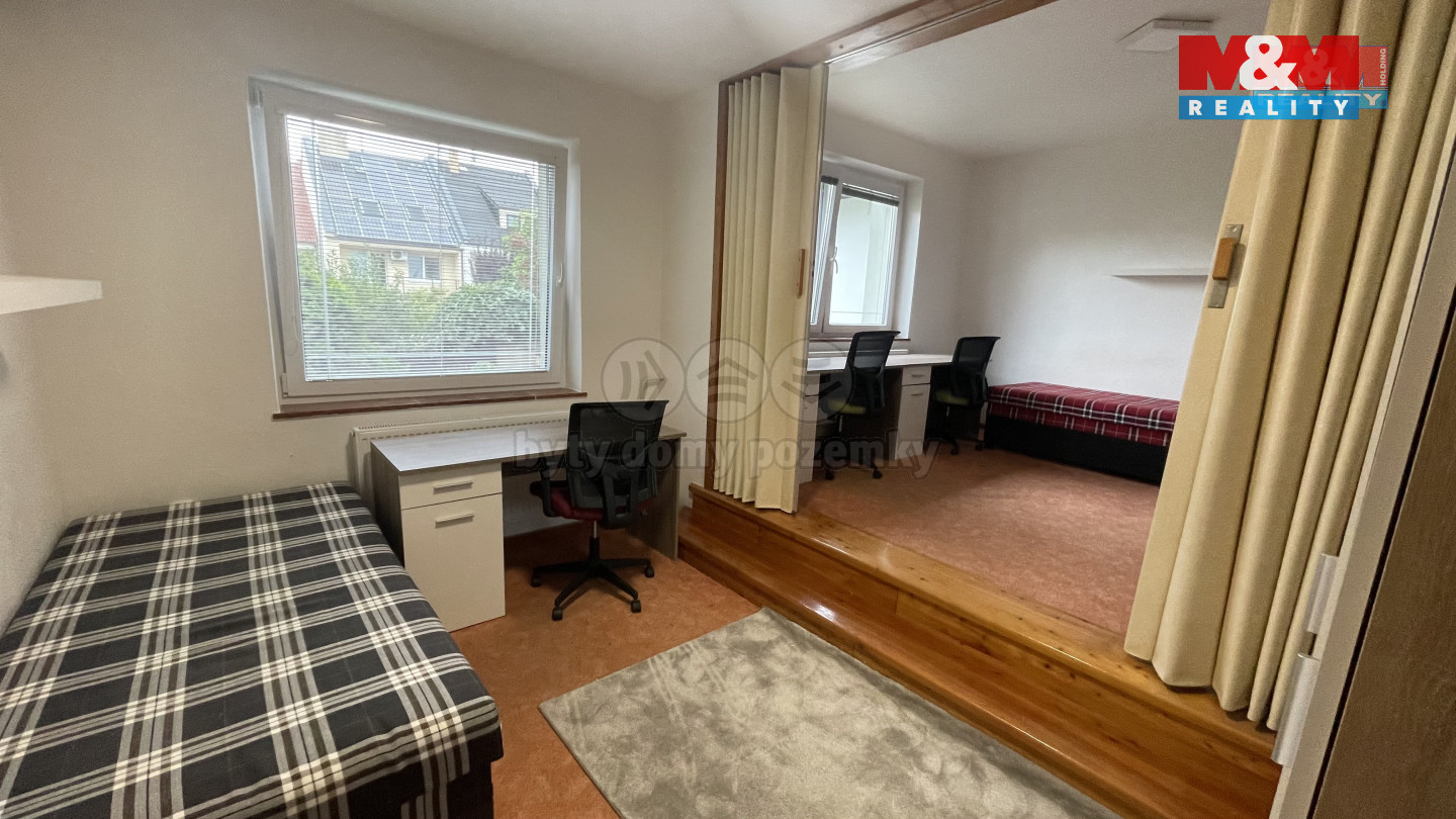 Nabízíme ubytování pro studenty v lukrativní lokalitě v rodinném domě v Olomouci. Jedná se o pronájem lůžek ve sdíleném pokoji. Pokoj je vybaven nábytkem - postele s úložným prostorem, psací stoly, židle, skříně. K dispozici na patře společná koupelna s pračkou a plně vybavená kuchyně. K užívání menší společná okrasná zahrada - atrium včetně terasy s posezením a grilem nabízející soukromí a klid. V uzavřeném dvoře možnost úschovy kol i motorek. Parkování aut u domu. Uvedená cena je za lůžko/osobu/měsíc. Cena nájmu zahrnuje energie, internet, úklid společných prostor, kuchyně i koupelny. Dům je udržovaný ve výborném stavu a nachází se v klidné ulici v zástavbě RD, 10 min. pěšky od FN a FTK. Ideální pro studenty lékařské fakulty. V dosahu MHD i veškerá občanská vybavenost. Nájezd na dálnici 2 min. Vratná kauce ve výši 7.000,- Kč. Volné ihned. Bližší info v RK.