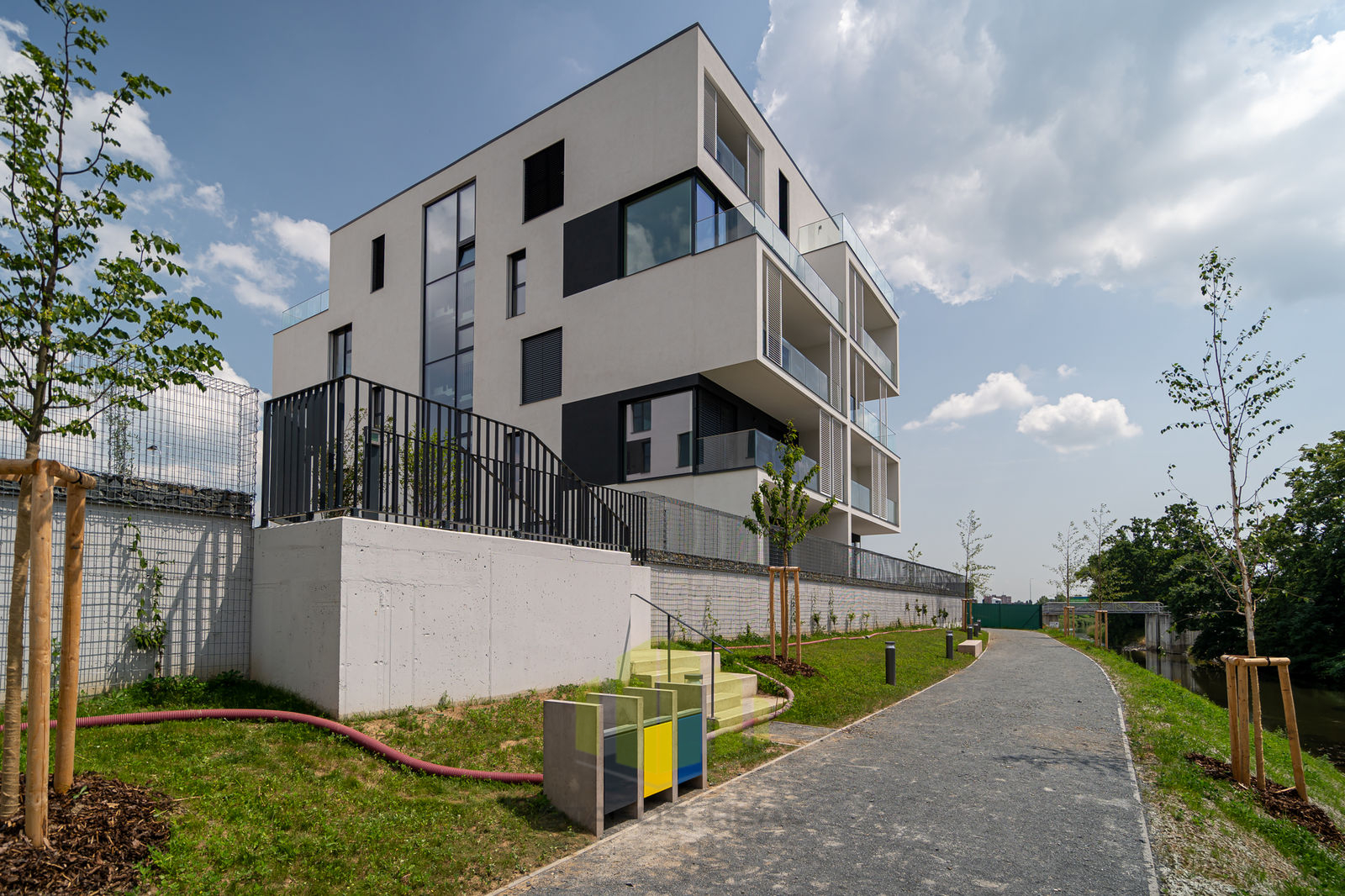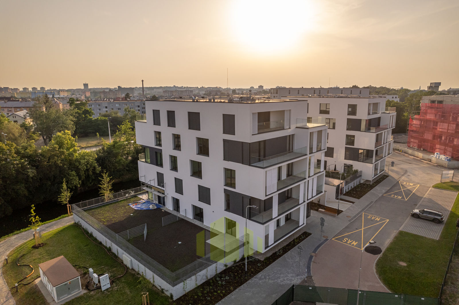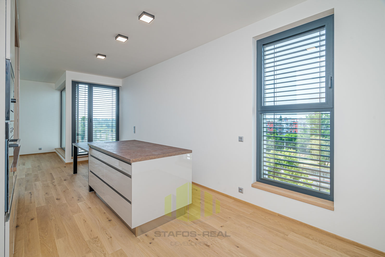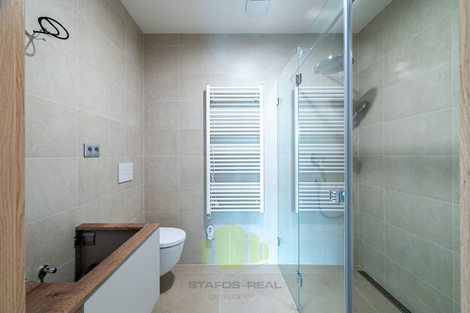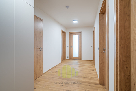 Nabízíme pronájem luxusního bytu 4+kk 127,7m2 + terasa 18m2 + lodžie 5,7m2 v posledním 5.NP novostavby přímo v centru města, v rámci projektu Šantovka Living, Olomouc. Jedná se o nový - postupně se rozrůstající - rezidenční bytový komplex nabitý moderními technologiemi, který mimojiné vyhrál soutěž HOF AWARDS 2023 o nejlepší rezidenční projekt v zemích střední a východní Evropy. Rezidence Šantovka Living je umístěna v těsné blízkosti OC Šantovka na ostrově obklopeného Mlýnským potokem a řekou Moravou. Byt, orientovaný na tři světové strany (Jih, Západ, Sever) nabízí úžasné panoramatické výhledy, a to hned ze dvou venkovních částí bytu - terasy o ploše 18m2 přístupné z obývacího pokoje, tak i lodžie o ploše 5,7m2 s posuvnými paravány přístupné z jedné z ložnic. Při vstupu do bytu je v zádveří umístěn botník s věšáky a šatní skříní, po pravé straně předsíně je k dispozici toaleta s malým umyvadlem, ložnice, dále ložnice s vestavěnou skříní a vstupem na lodžii. Z levé strany je pak umístěna technická místnost s rekuperační jednotkou, servisní skříňkou od podlahového topení a přípravou na pračku se sušičkou, dále koupelna s dvojumyvadlem, vanou a otopným žebříkem. Na konci chodby pak vcházíme do obývacího pokoje s kuchyňskou částí do tvaru L se vstupem na terasu. Obývací pokoj je průchozí do manželské ložnice s vestavěnou skříní a privátní koupelnou se sprchovým koutem, umyvadlem a toaletou. A jaké moderní technologie na Vás čekají? V prvé řadě je to úsporné stropní chlazení REHAU, rekuperace vzduchu a teplovodní podlahové topení v kombinaci s geotermálními vrty s tepelnými čerpadly, díky čemuž je bydlení nejen opravdu nízkonákladové a komfortní po celý rok, ale také antialergenní! Dále stojí za zmínku hliníková okna s trojskly, třívrstvé dřevěné podlahy, sádrové omítky, příprava na jacuzzi na terase, značková sanita, ale také i například kočárkárna/kolárna a místnost pro mytí kol a pejsků v přízemí! Velkým benefitem jsou již zmíněné dvě koupelny, jedna společná a druhá privátní manželská! Samozřejmostí je bezbariérový přístup do domu, vysokorychlostní stabilní internet optickým kabelem a moderní výtah. Součástí nájmu je také zděný sklep o ploše 7,8m2 a vnitřní parkovací stání v domě s možností dopronajmutí dalšího stání za 2.000,- Kč. Nájem činí 39.000,- Kč + náklady na bydlení cca do 5.000,- Kč včetně elektřiny. Kauce ve výši dvou měsíčních nájmů, lze rozložit do více splátek. Odměna RK ve výši jednoho nájmu + 21% DPH. Nastěhování možné po domluvě kdykoliv, nepozději však od 1.8. 2026. Prohlídky s vážnými zájemci po domluvě s makléřem, doporučujeme shlédnout také virtuální prohlídku. Využijte nabídky bydlet v exklusivní novostavbě, která nemá v Olomouci konkurenci!